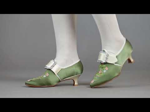 Step back in time with the delicious Primrose 18th century shoes. This authentic embroidered satin design has been recreated in collaboration with The Bata Shoe Museum, capturing the look and feel of the original shoes from 1770s-1790s. Made on the Dunmore last and 2 inch / 5 cm heel, you can be sure that style doesn't mean sacrificing comfort.