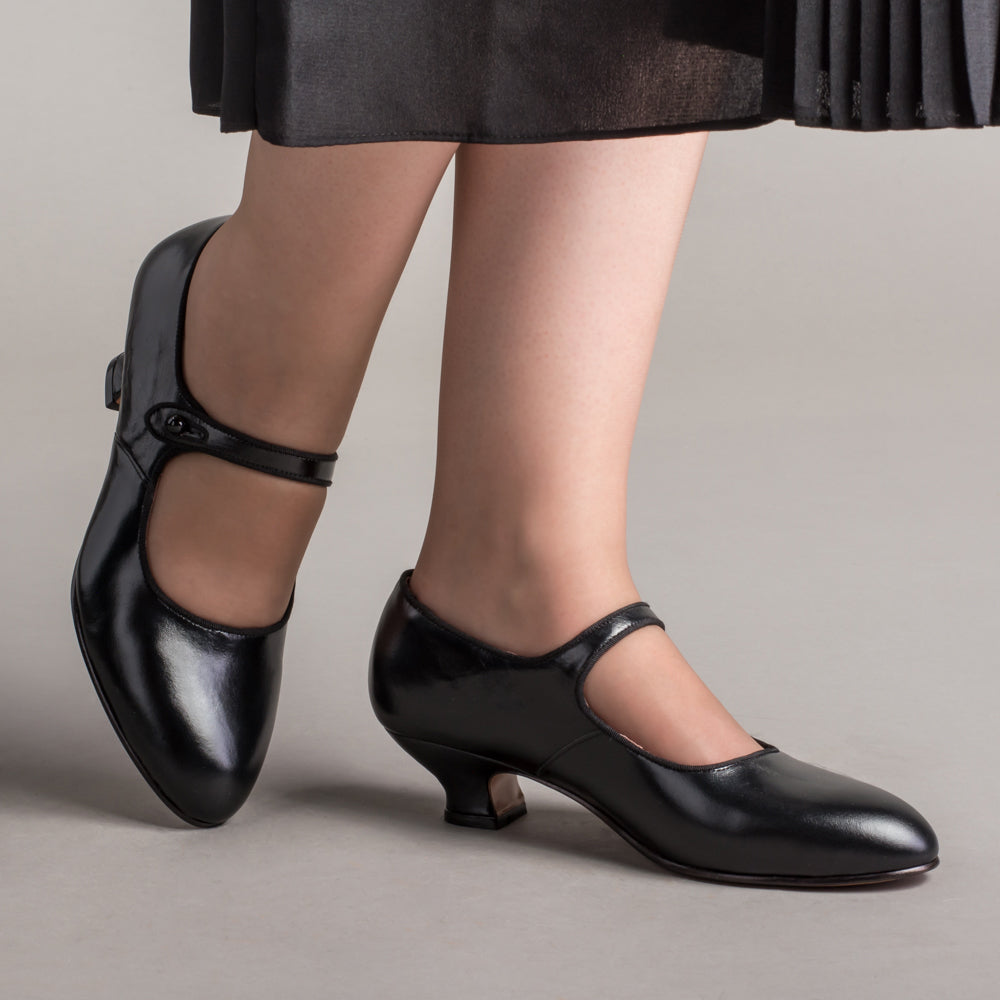 The gorgeous Millie 1920s low-heeled Mary Janes are the quintessential footwear of the Golden Age of Hollywood. Simple, elegant, and refined, the curves of these beautiful shoes accentuate the foot while the perfectly-balanced 1.75 inch / 4.4 cm French heel lends comfort and stability without sacrificing style.