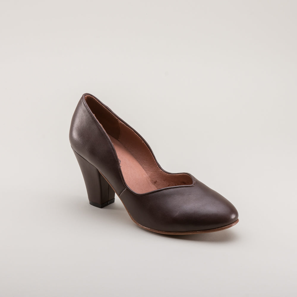 Our most popular vintage pump is now available in wide! Step into a pair of our famous Marilyn 1940s Pumps, the quintessential vintage slip-on shoe for the late 1930s, 1940s, and early 1950s. These beautiful reproduction shoes feature a curvaceous sweetheart vamp and rounded toes. Our custom 3"/ 7.72 cm reproduction '40s Cuban heel is stable and perfectly balanced for long-wearing comfort. Named for Marilyn Monroe, Marilyn pairs perfectly with just about every outfit for both day and evening.