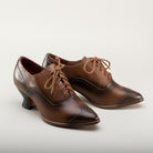 Whether you are fighting for the right to vote or exercising that right today, the Londoner Edwardian Oxfords will keep you on your feet, on the go, comfortably and chic all day long. Made of real leather with leather lining and soles, these beautiful reproduction Edwardian oxford shoes feature an adjustable lace-up closure, eyecatching broguing on the uppers, a stacked-look French heel, and a unique ombre patina finish. Paired with walking skirts of the 1910s or high-waisted jeans of the 2020s, the timeless Londoner oxfords are an excellent choice.