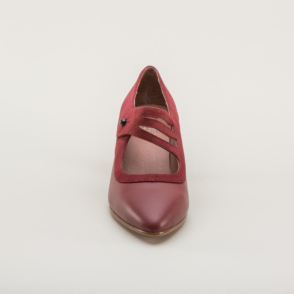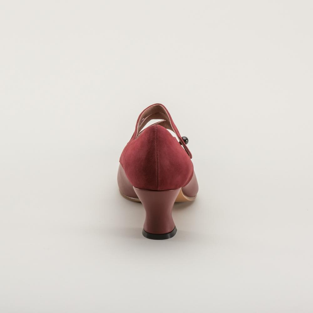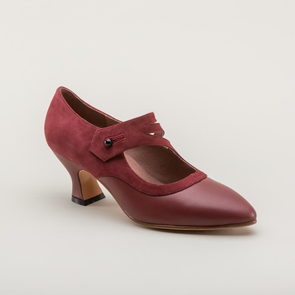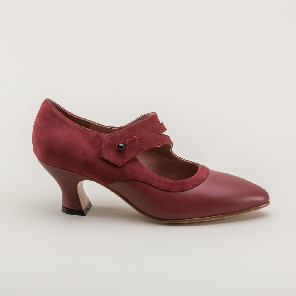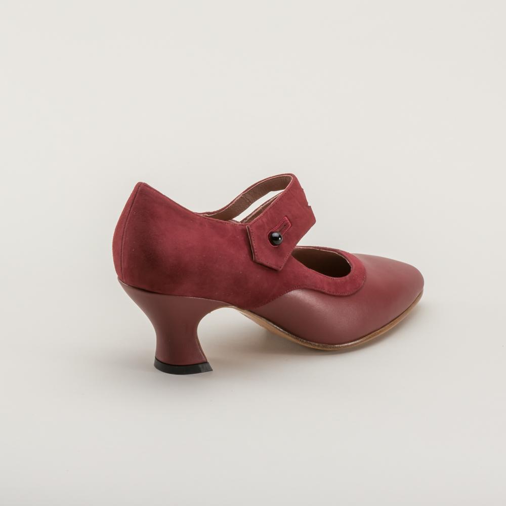 Developed directly from an original 1900s design, the Mae feature tone-on-tone suede and smooth leather with a sophisticated Mary Jane strap crossing elegantly over the instep. The 2.25 in / 5.7 cm French heel is delicate and well-balanced, paired with a pointed toe to create the perfect Edwardian and 1920s silhouette.