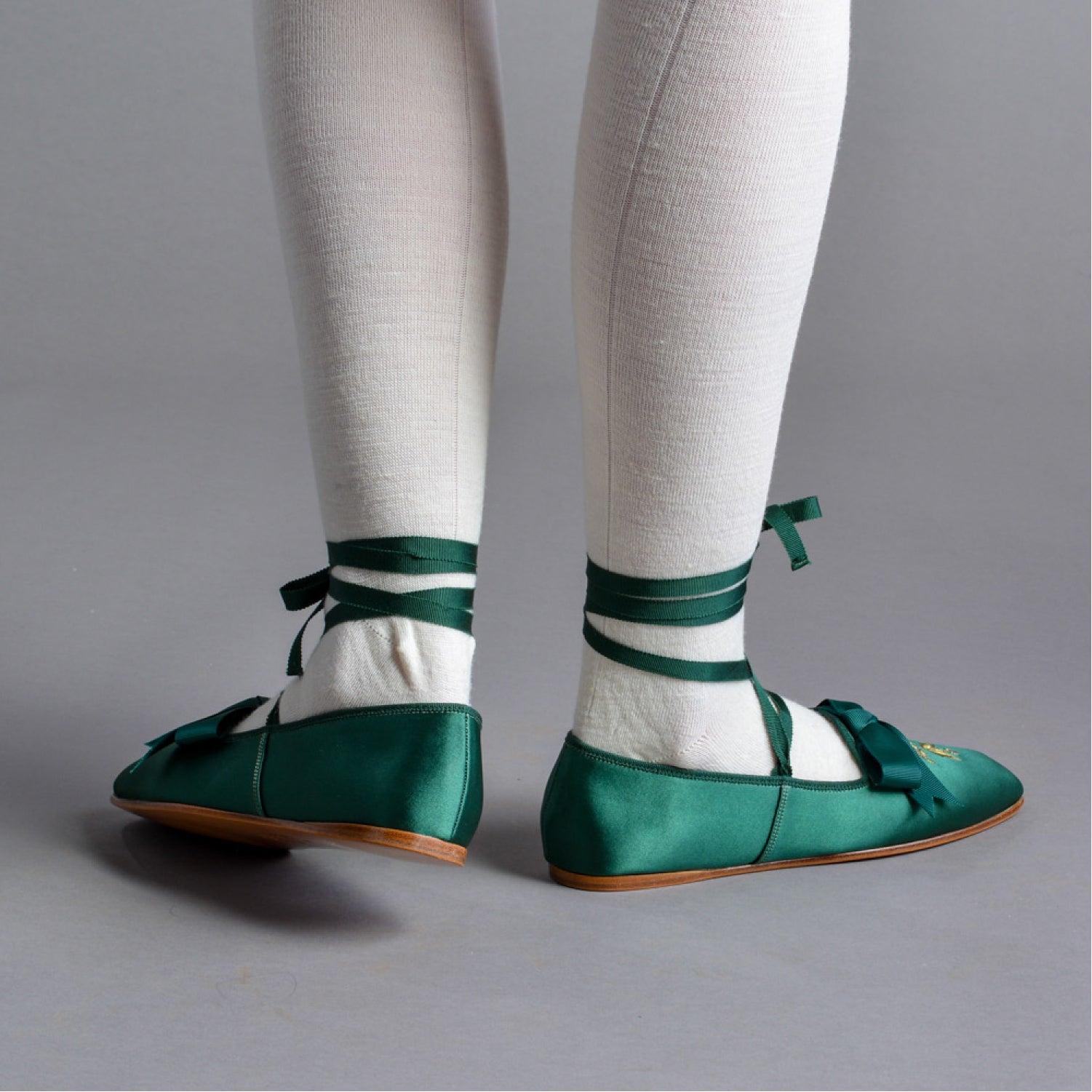 Bring your Regency dreams to life with the perfect pair of delicate dancing slippers. The Penelope slippers offer beauty, comfort, and versatility with so many color pairings, ways to wear the ribbons, and a soft yet durable construction.