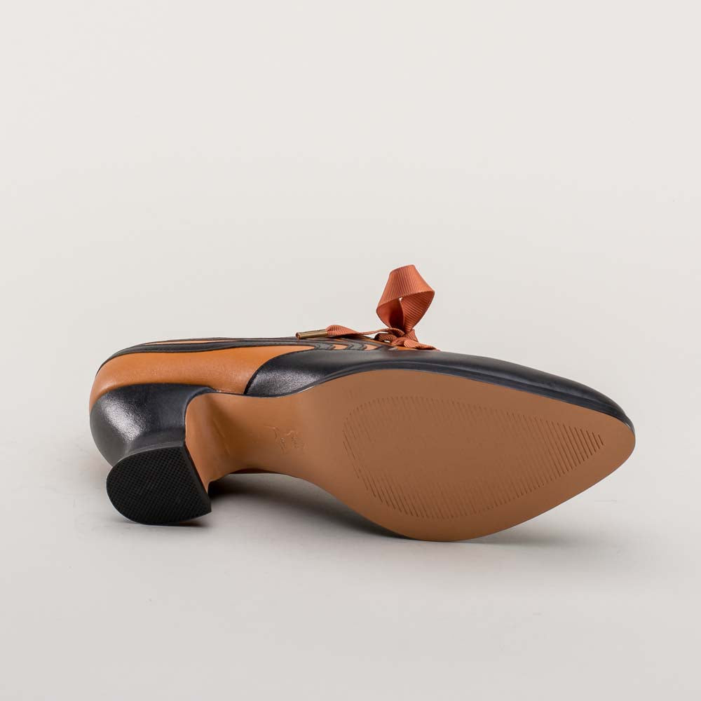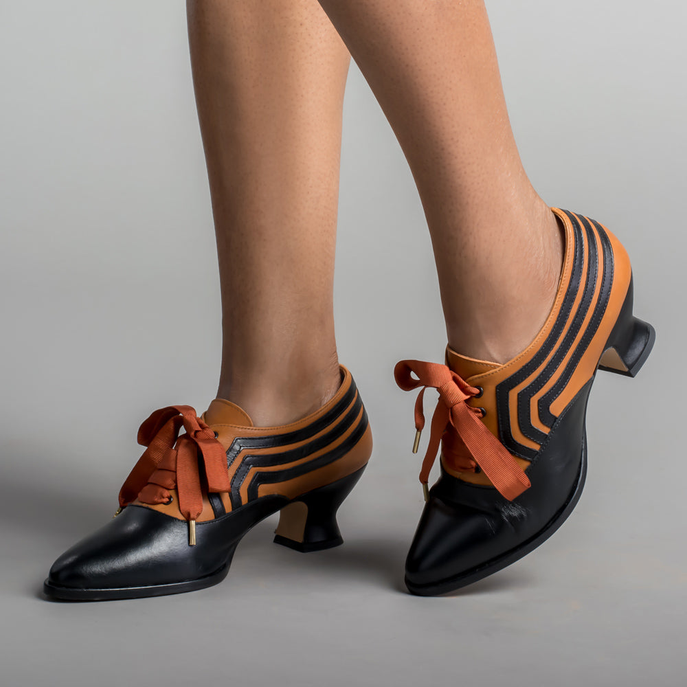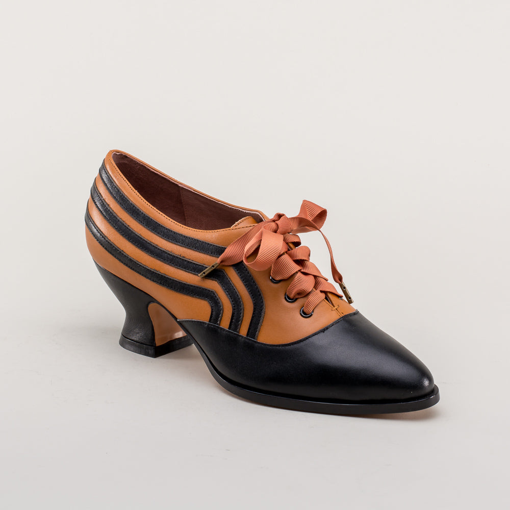 Bernadette Edwardian Oxfords Wide (Cognac/Black)