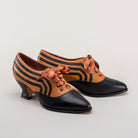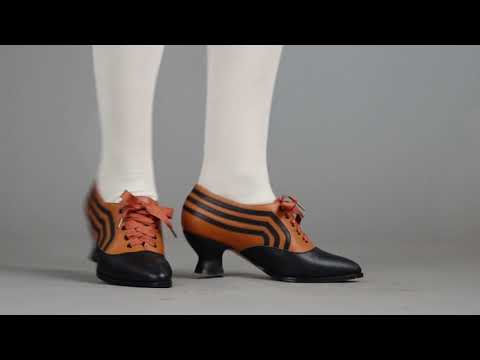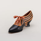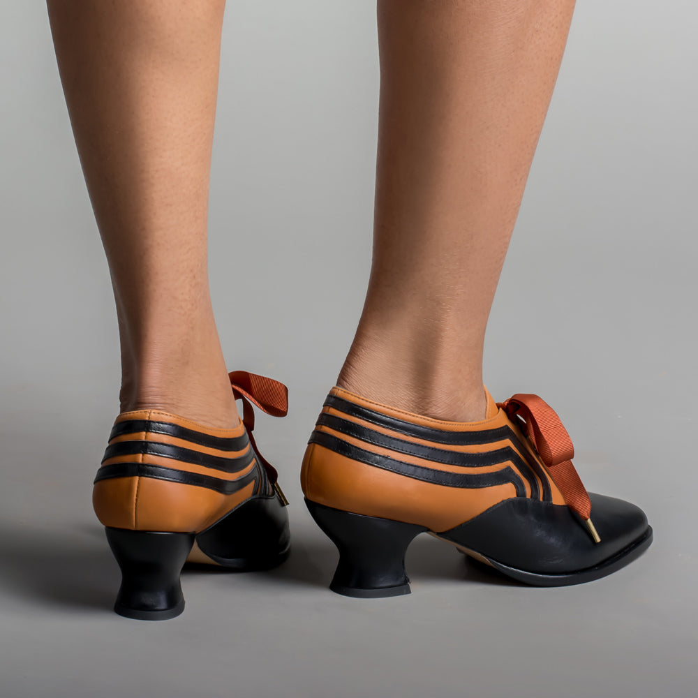 These attractive lace-up shoes have all the style and sass of footwear from c. 1900 through the 1920s and will keep you on your feet and comfortable all day, whether you're attending historical costuming events or walking the streets of New York City. Bernadettes feature our sturdy 2 inch / 5 cm French heel, welted hard-wearing leather soles, pointed toes, and an adjustable lace-up closure, plus all that style with eye-catching contrast stripes on all-leather uppers. Delicious!