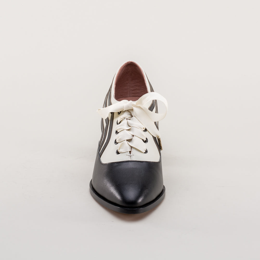 Bernadette Edwardian Oxfords Wide (Ivory/Black)