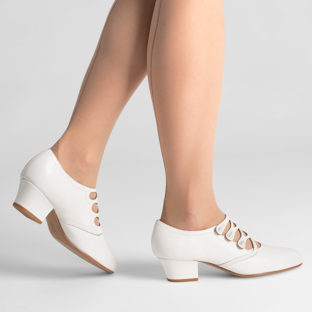 Gloria seamlessly combines all of the elegance of 1910s/1920s footwear with practicality, resulting in a refined shoe fit for all-day wear. Finely detailed leather straps with period-authentic cutouts glide gracefully over the vamp and close with functional matching buttons. Gloria's comfortable almond toe and stable, 1.6"/4 cm Cuban heel make this shoe suited for promenades on the boat deck and dancing the night away. This wonderfully versatile shoe is accurate to the 1910s all the way through to the 1940s. Gloria is available in both standard and wide width.