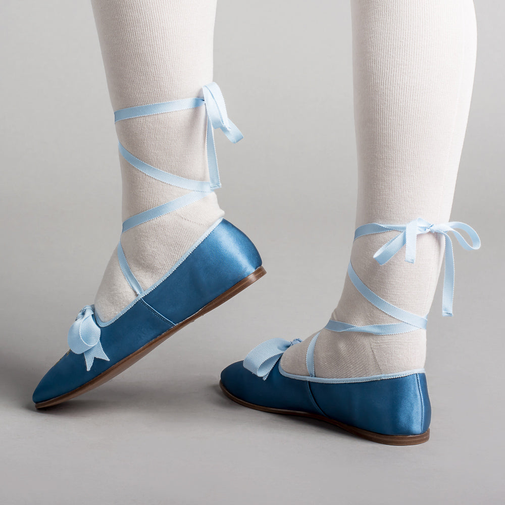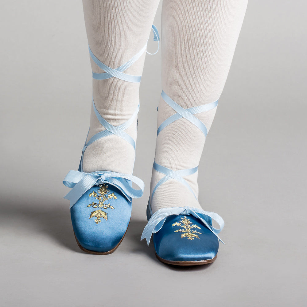 Bring your Regency dreams to life with the perfect pair of delicate dancing slippers. The Penelope slippers offer beauty, comfort, and versatility with so many color pairings, ways to wear the ribbons, and a soft yet durable construction.
