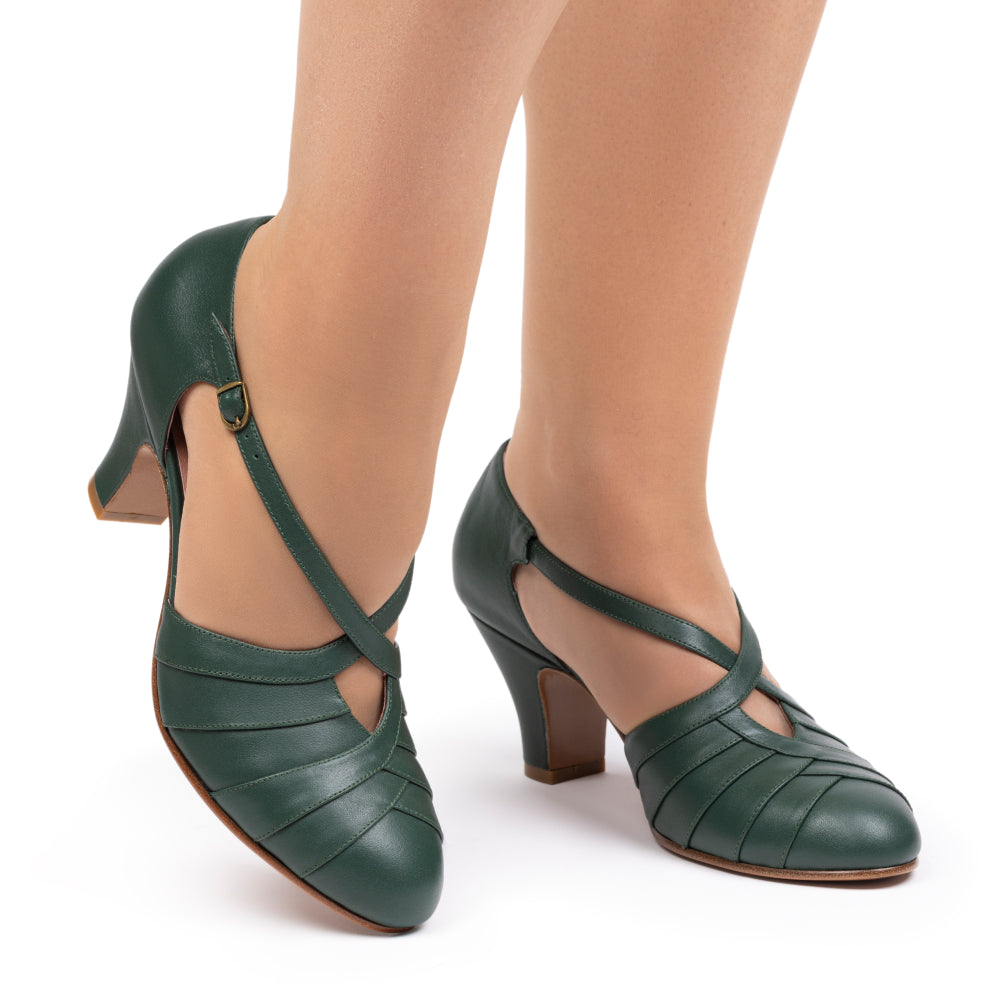 Looking for a shoe that combines the glamour of old Hollywood and all-day wearability? Look no further than Melrose! Based on period originals, these beautiful pumps capture the silhouette and style of the 1930s with sleek straps criss-crossed over the instep, a keyhole opening over the vamp, and gorgeous leather piecing. The straps feature hidden elastic inserts, for additional comfort and ease. Melrose features our classic 2.5"/ 6.35 cm Spanish heel, which is perfectly balanced for comfort. Whether you're donning daywear or evening wear, Melrose fits the occasion.
