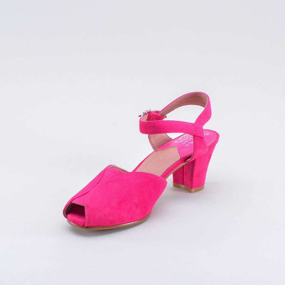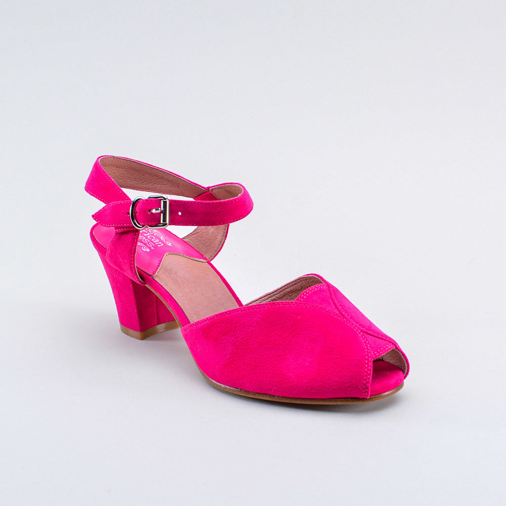 If you're looking for the perfect vintage sandal, look no further than Lido. These pretty and practical shoes are closely based on an original late 1940s to early 1950s faux suede sandal in our collection. The design is perfectly balanced, made in a durable everyday material, with secure buckle straps and a tiny peep toe, making the Lidos perfect for dancing, walking, and lounging.