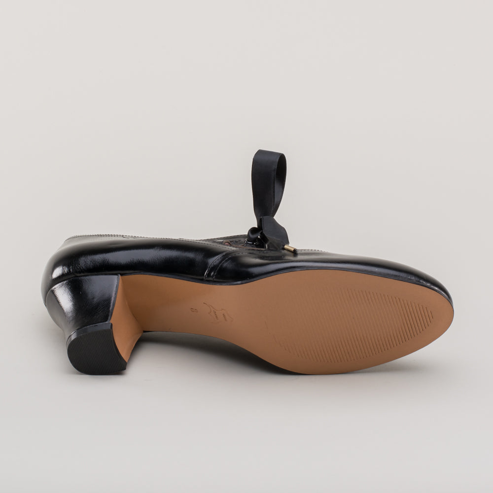 The original Parker Spiderweb Pumps were made in black patent leather, to which we have stayed faithful with our glossy, high-grade glacé calf. Wear Parkers all year around to add a little gothy interest to any outfit both historical and modern. They're perfect for any vintage attire along with Lolita, Steampunk, Dark Academia, and other aesthetic dress