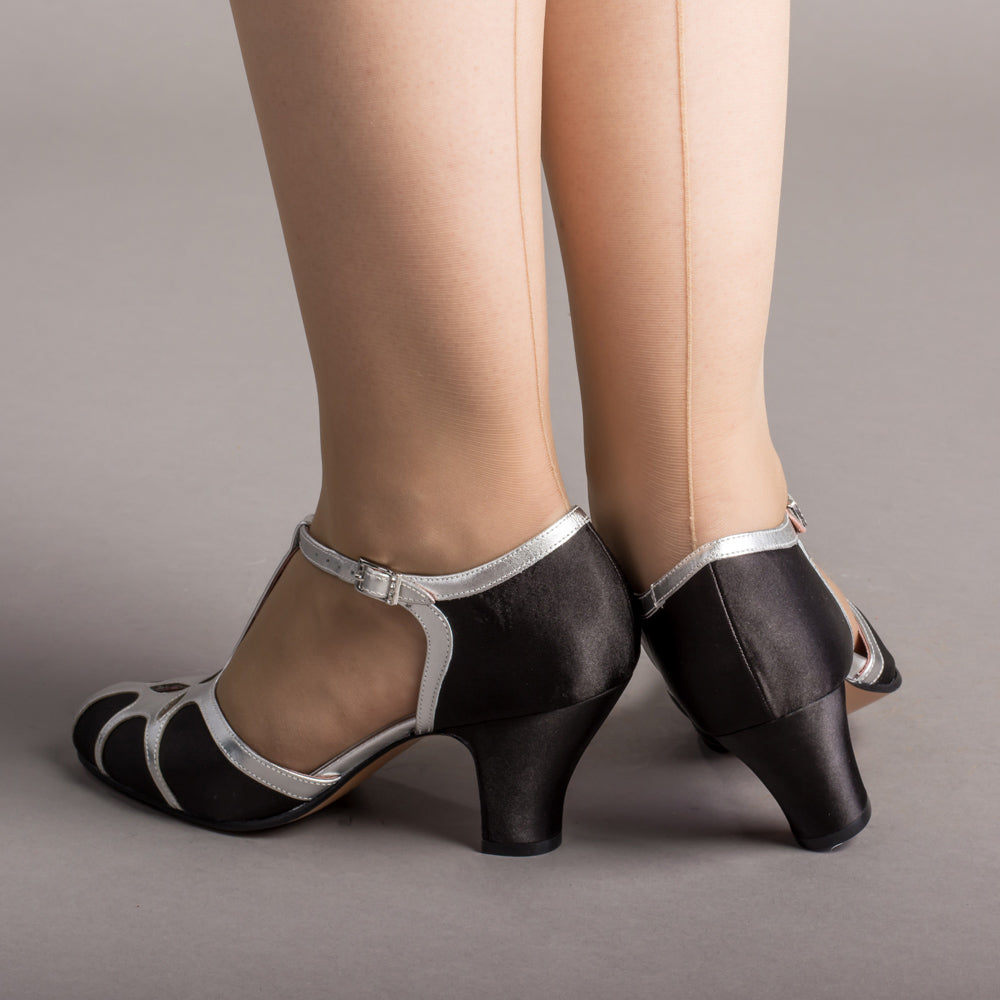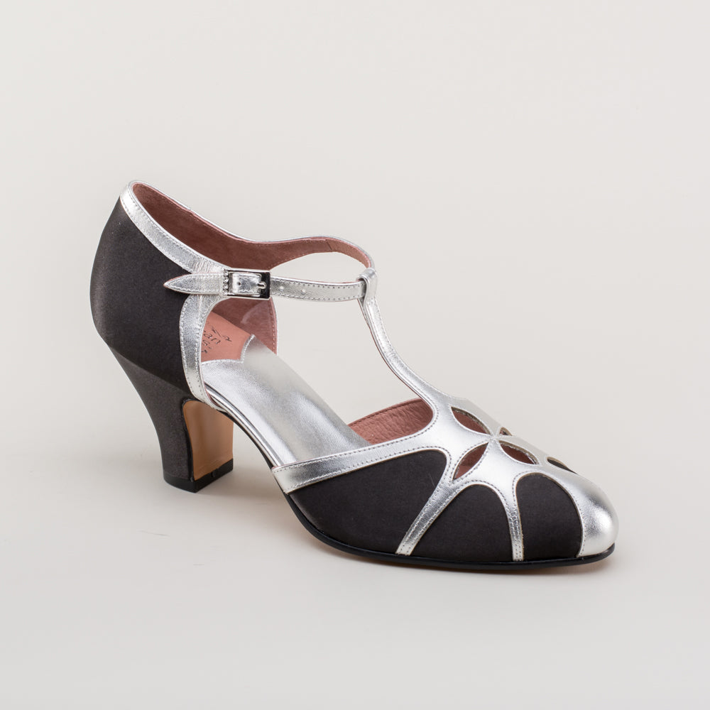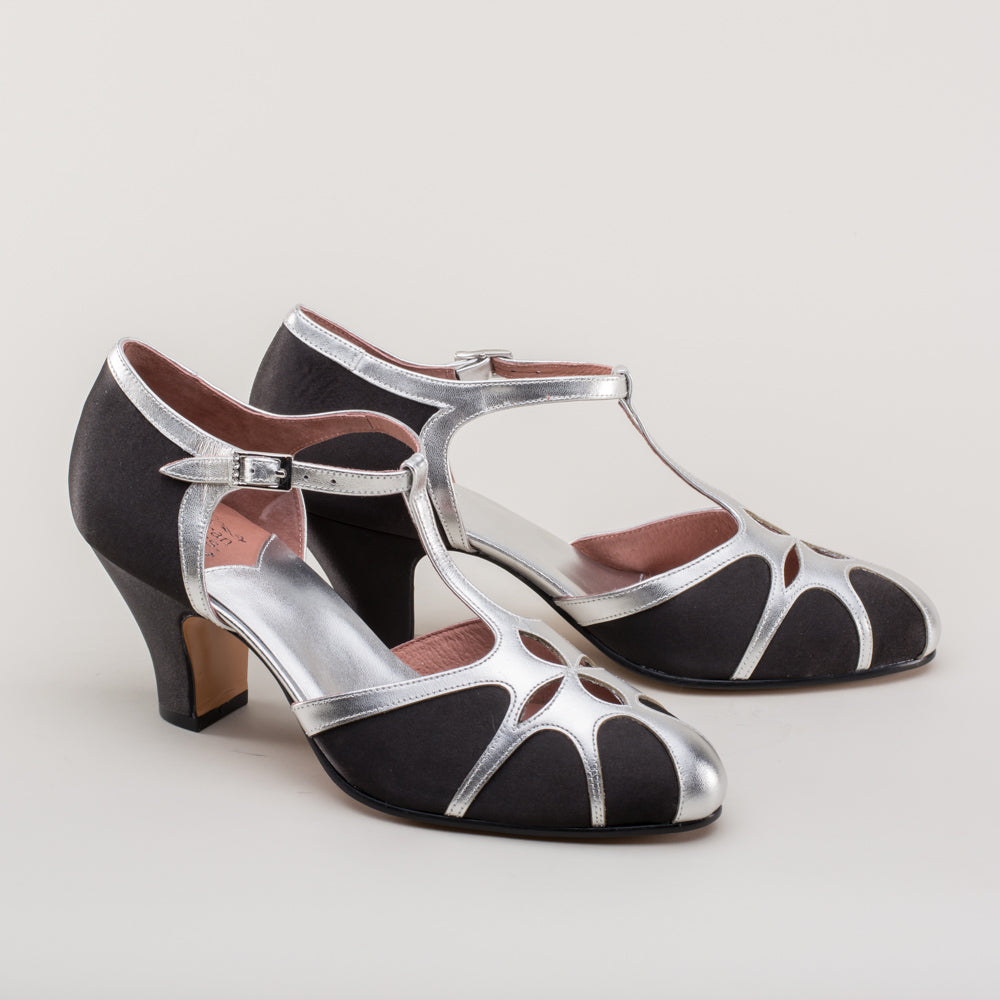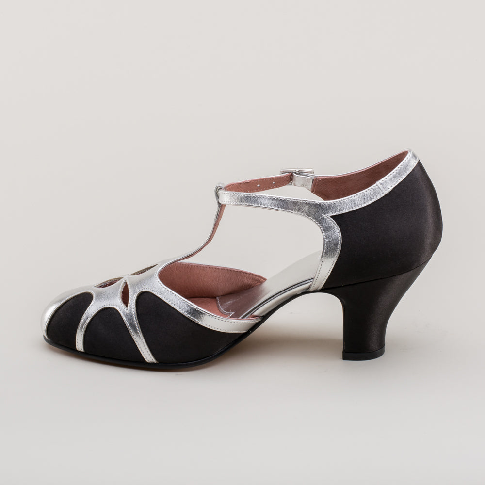 Lilith Vintage Flapper T-Straps Wide (Black/Silver)