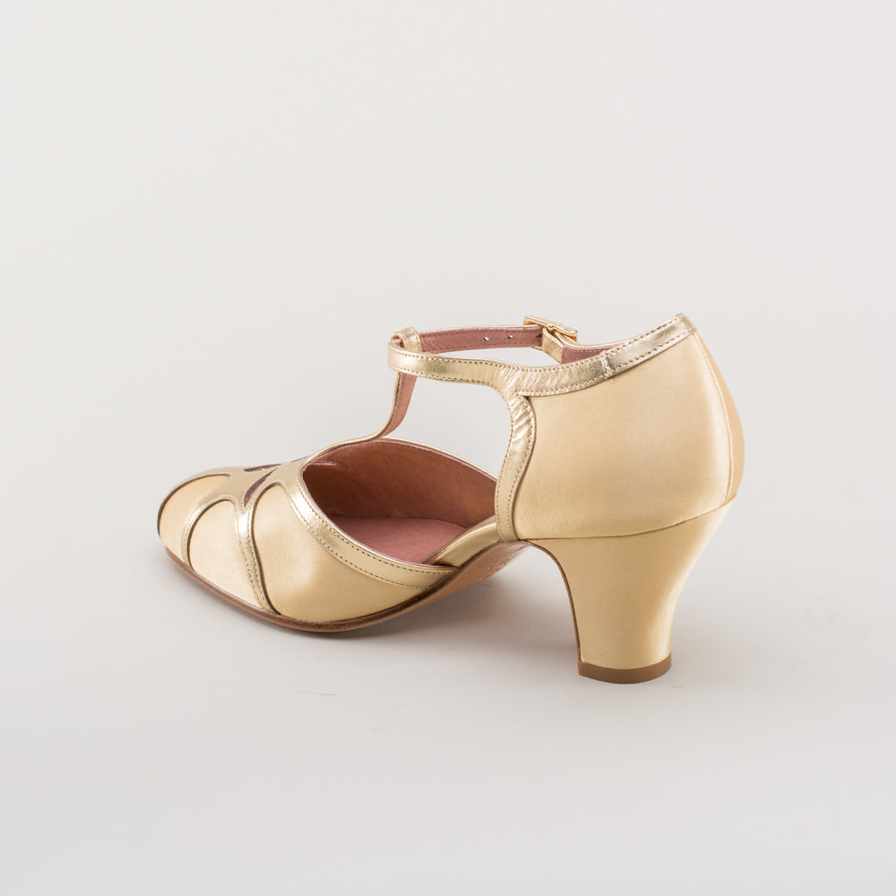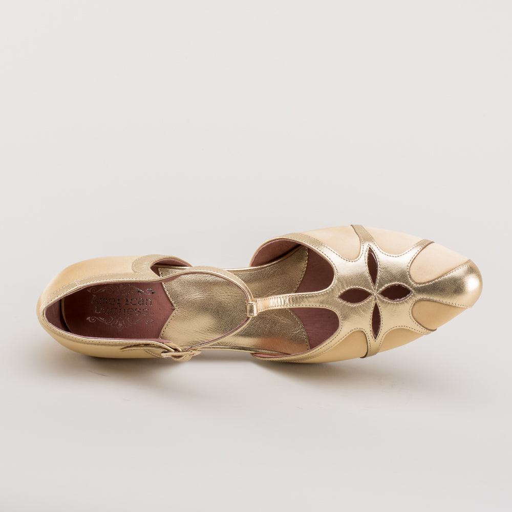 Lilith Vintage Flapper T-Straps Wide (Gold/Gold)