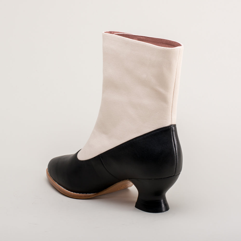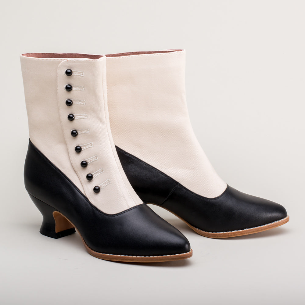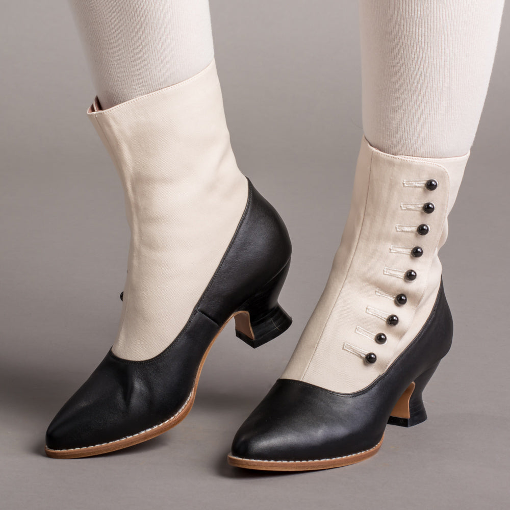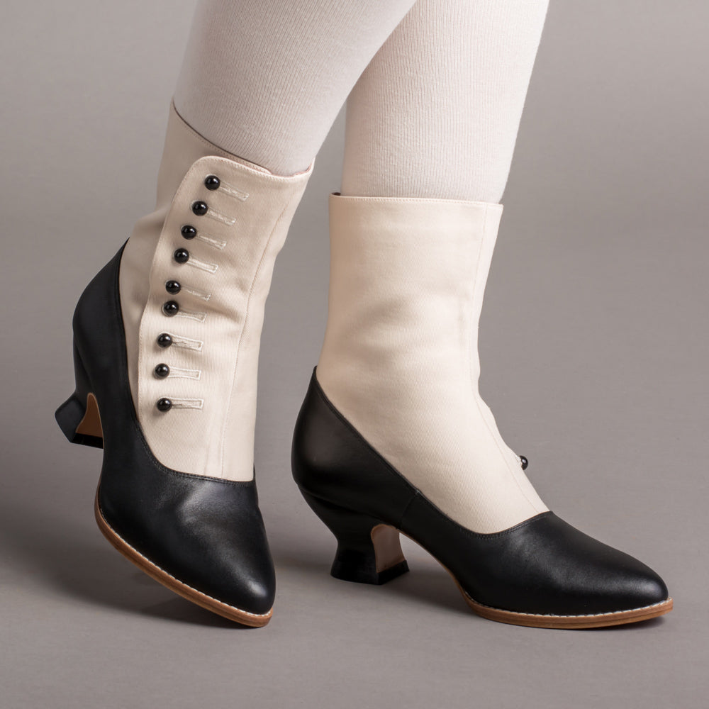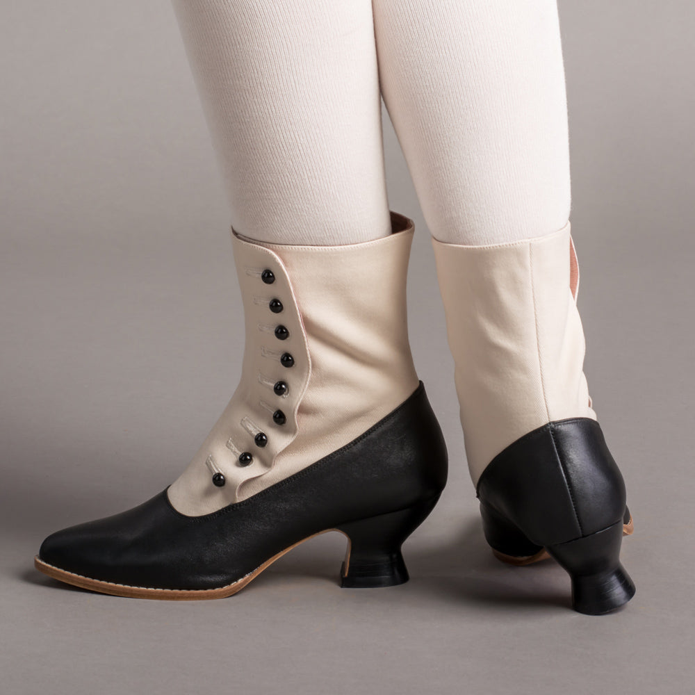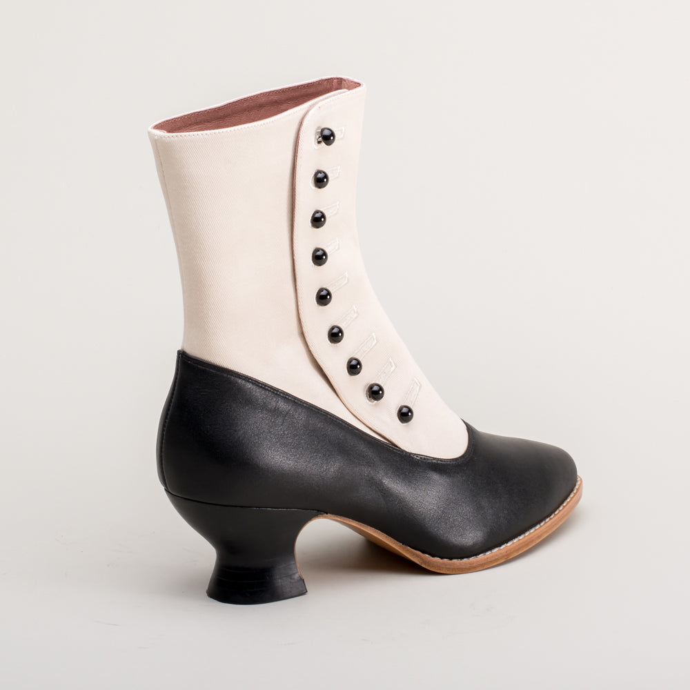 Manhattan Victorian Cloth-Top Button Boots (Ivory/Black)