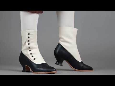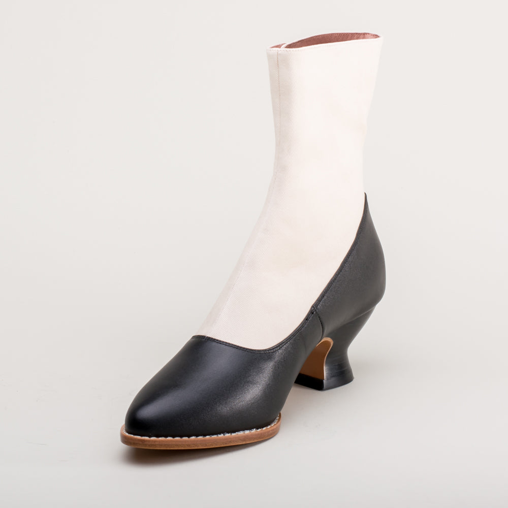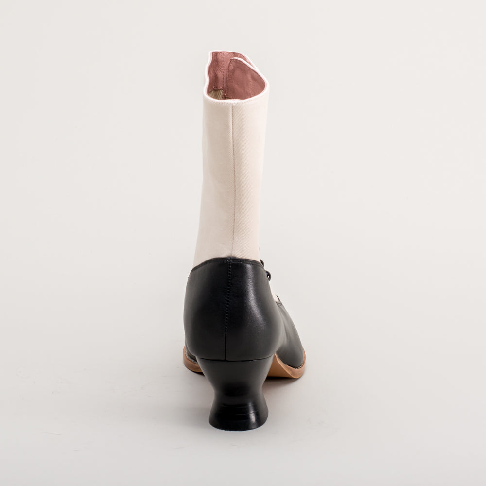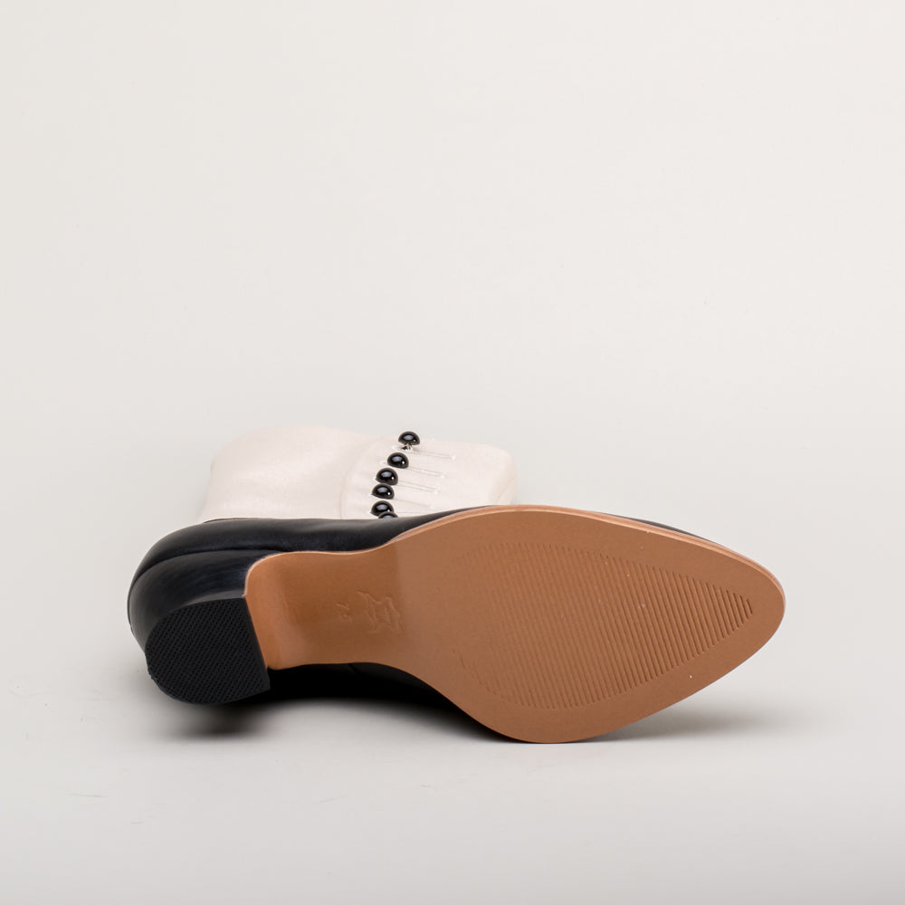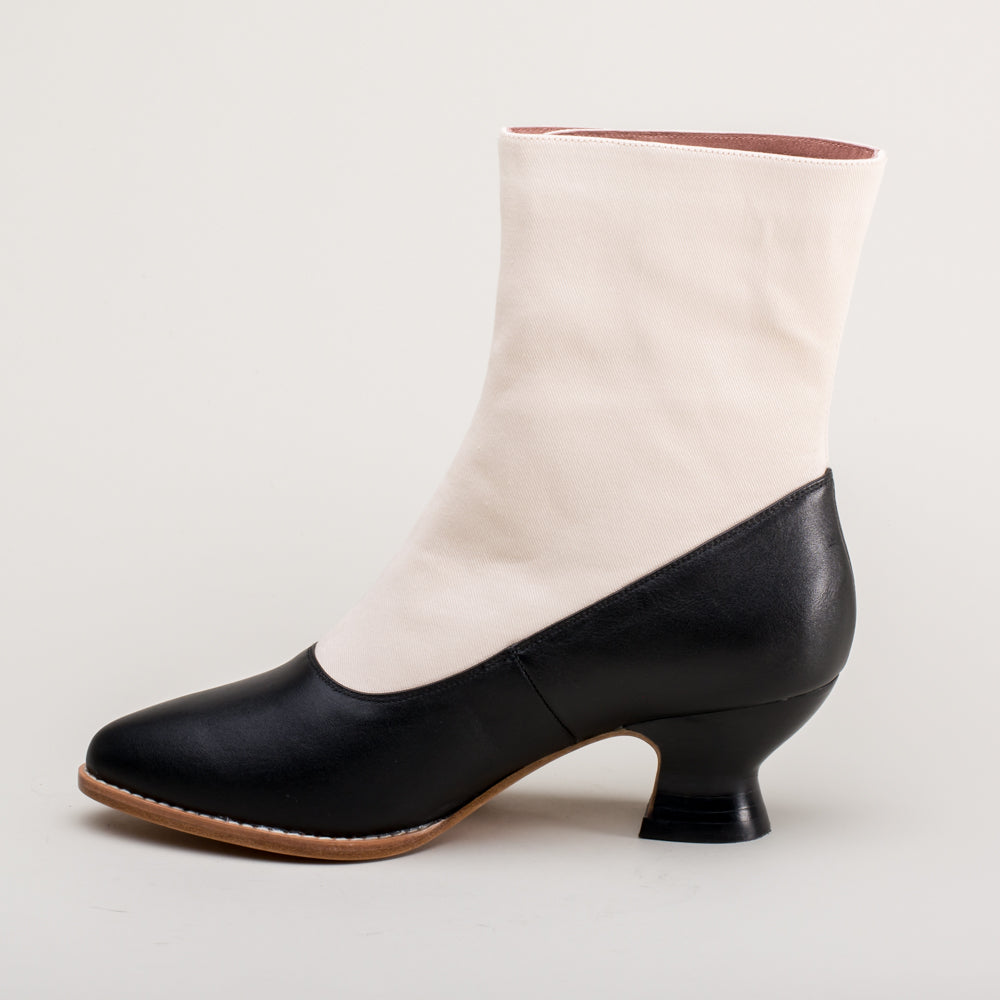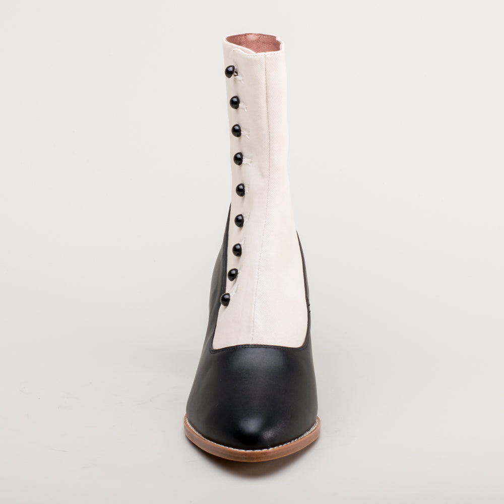 Manhattan Victorian Cloth-Top Button Boots (Ivory/Black)