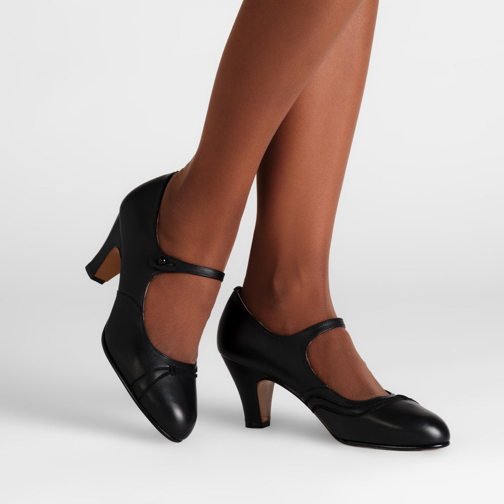 Get ready to cut a rug with Vera, our classic 1920s bar shoe. Modeled after historic originals, Vera features a quintessential strap across the instep, complete with a functional button closure. Vera's uppers are decorated with graceful suede piping in coordinating colors. Made with a new, period-accurate 1920s last, Vera is built on our custom 2.5"/6.35 cm Spanish heel, which is perfectly balanced for comfort. Vera is available in a selection of neutral-colored leathers for a sleek and streamlined look that adds versatility to your wardrobe. This darling bar shoe goes with just about anything! Vera comes in both standard and wide widths. A button hook is recommended to easily close your Vera Bar Shoes.